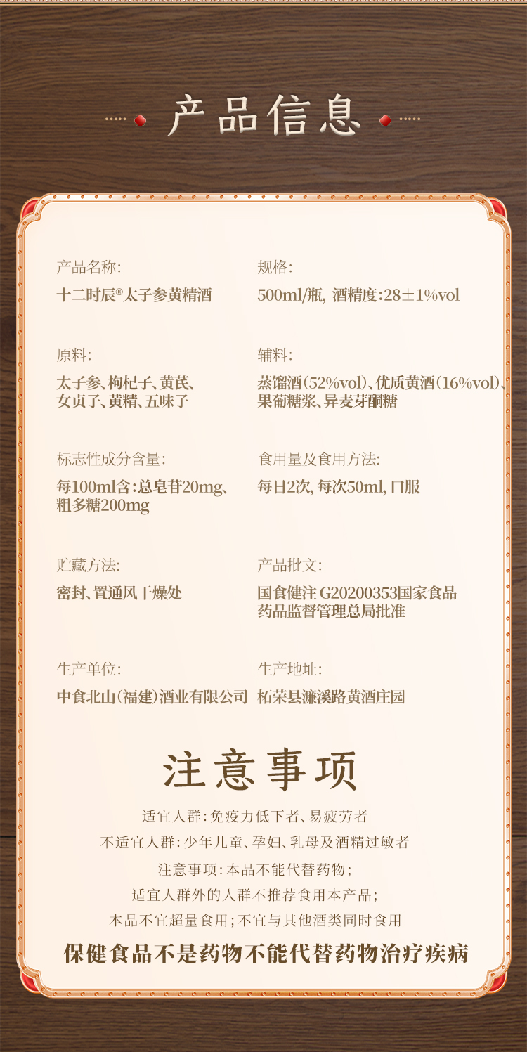 十二時辰?太子參黃精酒禮盒裝500ml*2瓶